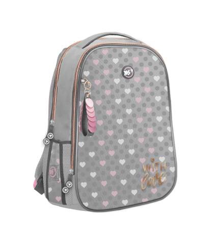 Tvirta kieto rėmo kuprinė su 2 skyriais. Priekinis skydelis suprojektuotas taip, kad lengvai prispaudus, nesideformuoja ir išlaiko formą, jei kuprinės apkrova nevienoda. Korpusas yra pagamintas iš kietos EVA medžiagos. Kuprinė prisitaiko prie stuburo ir neleidžia stuburui išlinkti bei palaiko taisyklingą laikyseną. Unikali diržų fiksavimo sistema leidžia reguliuoti kuprinės padėtį ant vaikų nugaros. Yra papildomas krūtinės diržas peties diržams tvirtinti. Dvi tinklinės kišenės skirtos vandens buteliukams ir kitiems asmeniniams daiktams. Yra skyrius nešiojamam kompiuteriui, telefonui. Yra šeši šviesą atspindintys elementai. Kietas dugnas su apsauginėmis pagalvėlėmis.