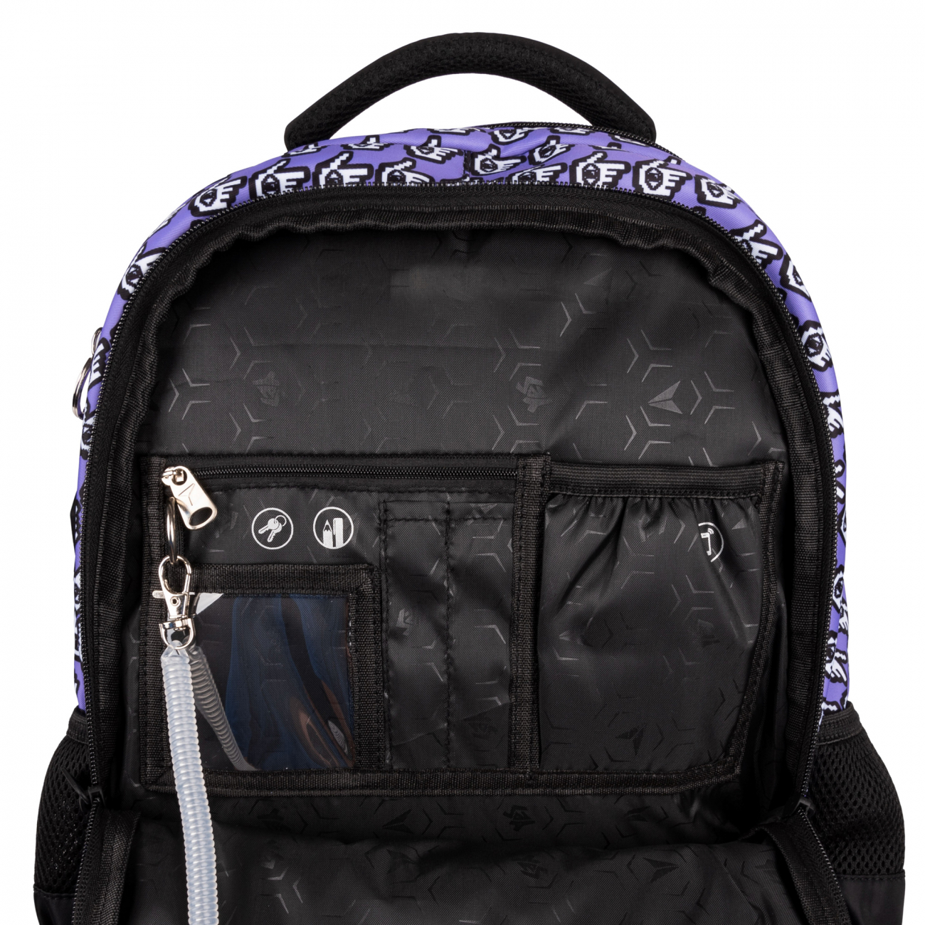 • Krūtinės dirželis su aukščio reguliavimu tvirtam kuprinės fiksavimui;