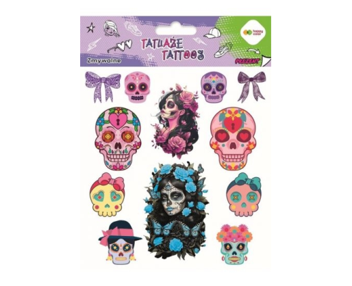 Nuplaunamos tatuiruotės Pink Skulls (lapas 15x20cm) Happy Color HA4261 1520-UH01