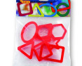 Įvairių geometrinių figūrų formelės. Pagaminta iš plastiko. Rinkinyje 8 figūrėlės.Prekės parametrai