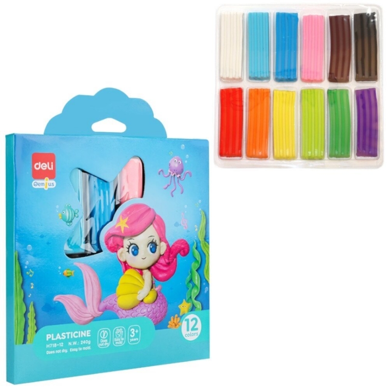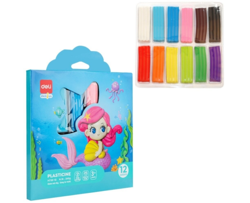 - Plastilinas DELI EH718, 12 spalvų 240g