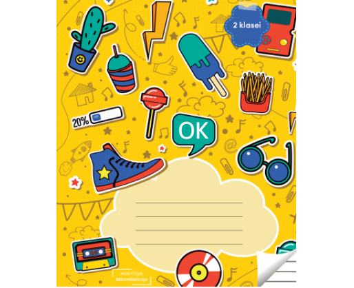 - Sąsiuvinis linijomis, 2 klasei, 12 lapų. Vidinių lapų gramatūra – 90 g/m2.