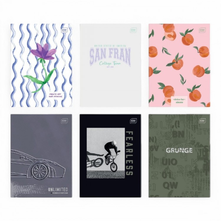 - Sąsiuvinis Interdruk A4, 60 lapų linija, įvairių motyvų viršeliai