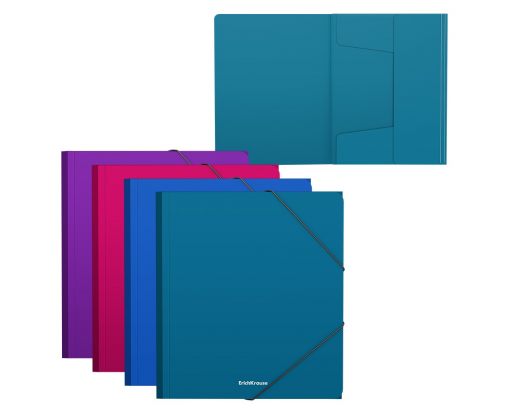 Plastikinis aplankas A5+ formato. Tinka mokykliniams sąsiuviniams. Su trimis atvartais, uždaromas gumelėmis.