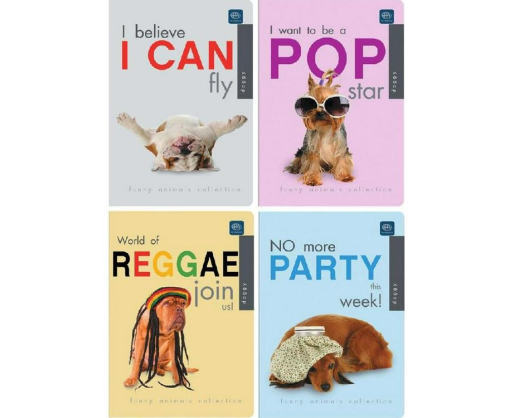 Sąsiuvinis A5 Interdruk, 12 lapų, linija, Funny animals collection įvairiūs kartoniniai viršeliai