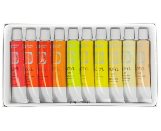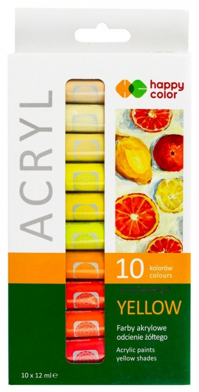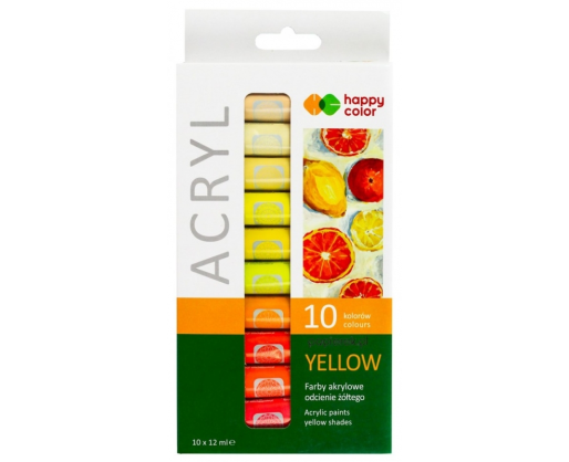 Akrilas 10sp. 12ml geltonų atspalvių paletė Happy Color Y10
