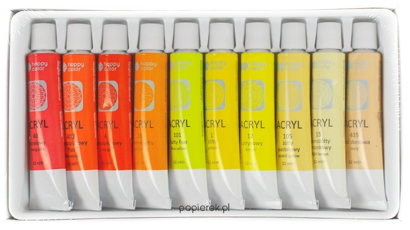 - Akrilas 10sp. 12ml geltonų atspalvių paletė Happy Color Y10