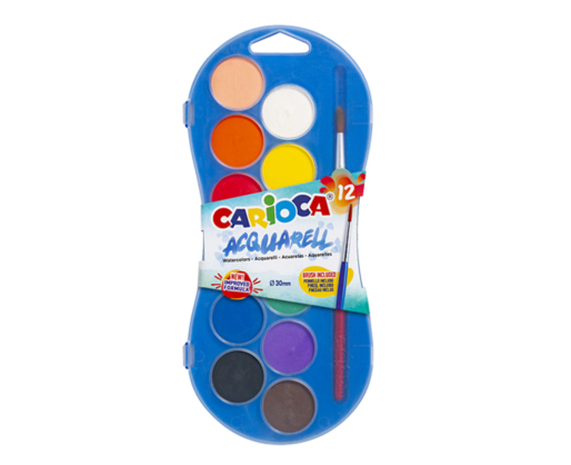 - Akvarelė CARIOCA, 12 spalvų, 30mm skersmens