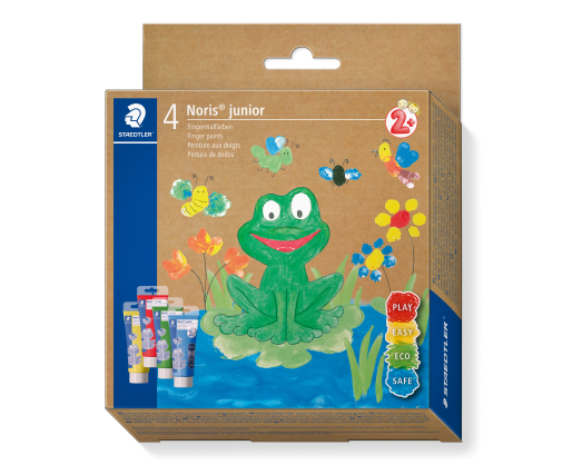 Noris® junior 8814 pirštų dažai 4 x 75 ml. Edukaciškai naudingi žaislai. Intensyvios, šviesai atsparios spalvos. Naudokite pirštu, kempine, mentele arba teptuku ant popieriaus, kartono, medžio ir stiklo / lango. Patvarūs ant langų. Lengvai maišomi, greitai džiūsta. Atitinka EN71 7 dalį.