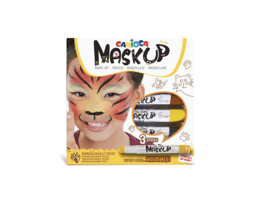• Dėžutė su 3 vnt. CARIOCA ANIMALS veido dažų lazdelėmis.