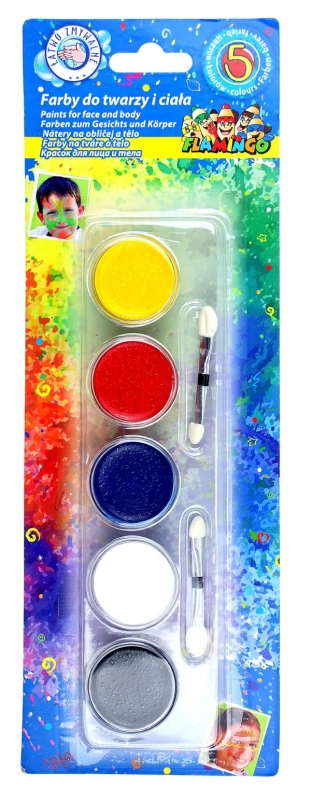 5 spalvų veido ir kūno grimo dažų rinkinys.