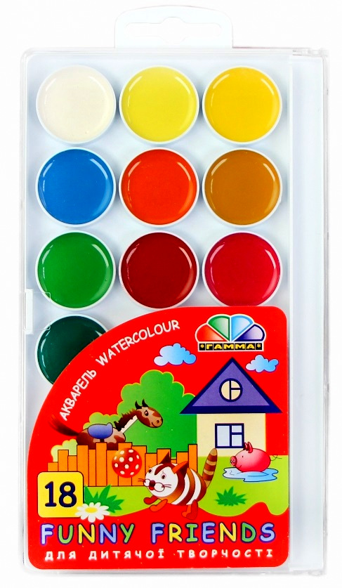 - Akvarelė GAMMA BITUTĖ, 18 spalvų rinkinys