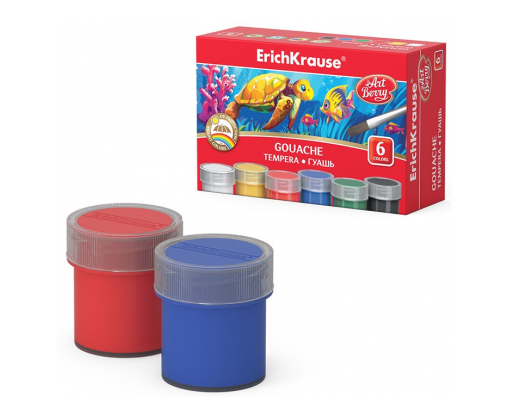 - Guašas ErichKrause 41744, 6 spalvos po 20ml