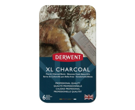 Mėgaukitės visomis jums patinkančiomis medžio anglies savybėmis su šiais stambiais XL anglies blokeliais. Šiose kaladėlėse anglis derinama su sodriomis natūraliomis spalvomis ir puikiai tinka išraiškingiems darbams. Galite sukurti įvairiausias tekstūras ir efektus naudodami jų šoną, kraštą ar kampą. Įmanomi platūs potėpiai, subtilus suliejimas, smulkios linijos ir gilus tonas, nes šiuos XL blokelius lengva sumaišyti ir sutepti. Derwent XL anglies blokus lengva sluoksniuoti – net šviesius ir tamsius.