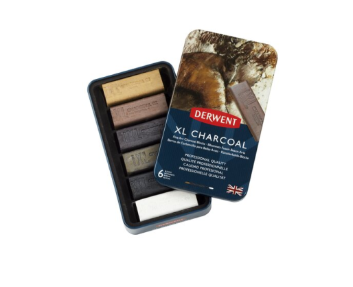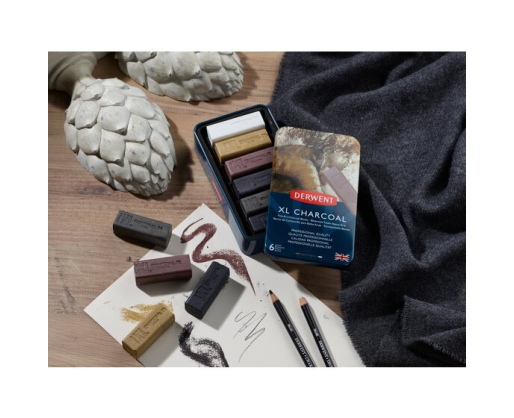 - Presuota anglis Derwent Carcoal XL, 6 spalvos, metalinėje dėžutėje