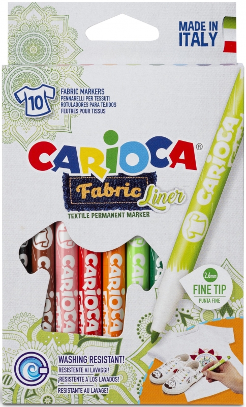 - Flomasteriai CARIOCA LINER piešimui ant audinio, 10 spalvų