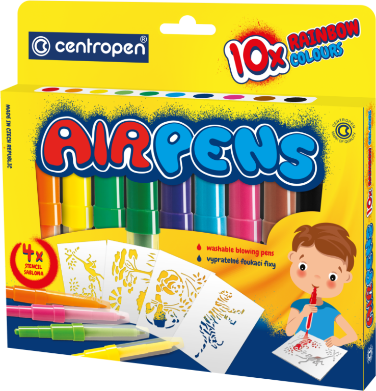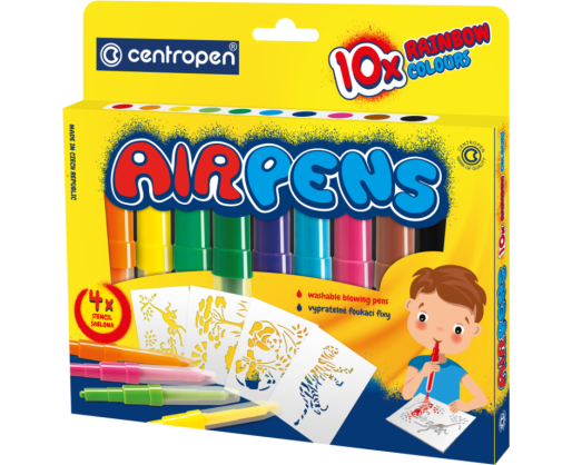 Flomasteriai CENTROPEN AIRPENS 10 spalvų su 4 trafaretais