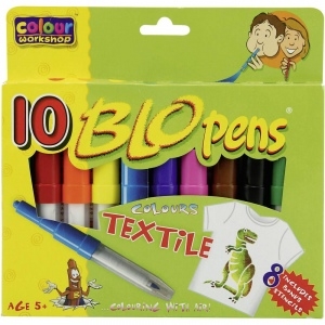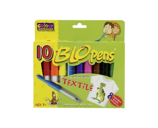 Tekstiliniai flomasteriai "BLO PENS" tekstilei piešia oro pagalba. Pučiant į vamzdelį, esantį flomasteryje, audinis pasidengia smulkiais spalvotais taškeliais. Įdomus spalvinis efektas gaunasi, jeigu išpūsti kelias spalvas vieną ant kitos. Taip pat galima naudoti kaip įprastą flomasterį, piešiantį plona linija.