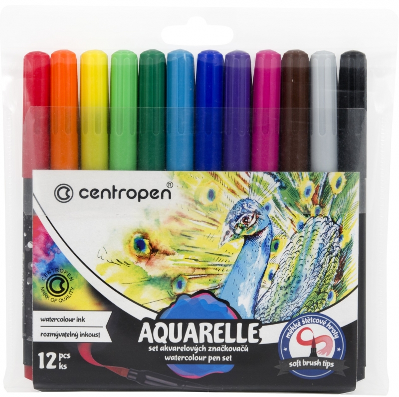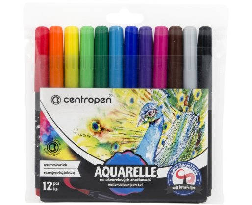 - Akvareliniai flomasteriai CENTROPEN 8683, 12 spalvų
