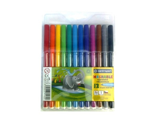 Flomasteriai Centropen, 12 spalvų. Brėžio storis 1,8mm. Pagaminta Čekijoje.
