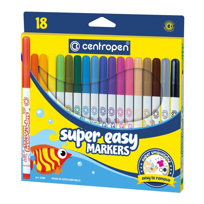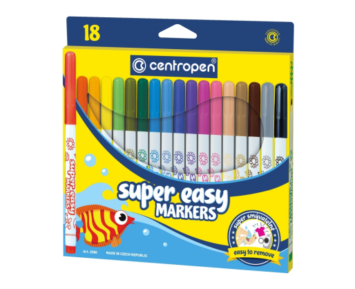 - Nuplaunami flomasteriai CENTROPEN Super Easy 2580, 18 spalvų