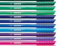 Flomasteriai konuso formos galu. Idealiai tinka tiksliam spalvinimui, nuplaunamas nuo odos, audinių ir kitų paviršių naudojant muilą ir vandenį. Pastovus ir didelis rašalo srautas, neuždiūsta 48 val., Idealiai tinka mokykloms.Prekės parametrai