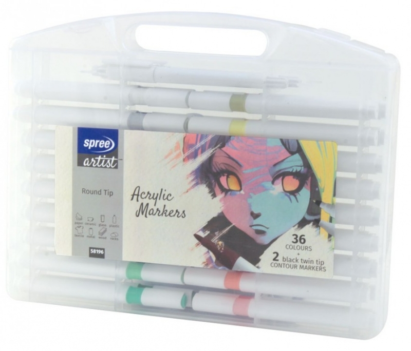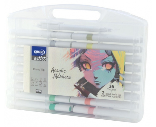 - Akriliniai markeriai SPREE, 36 spalvos +2kontūriniai, tribriauniai, Q4mm