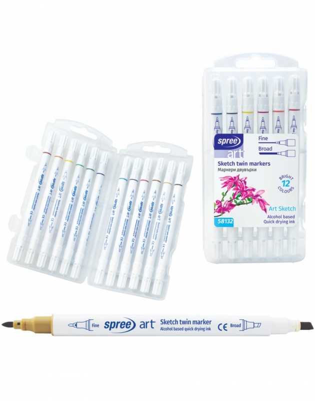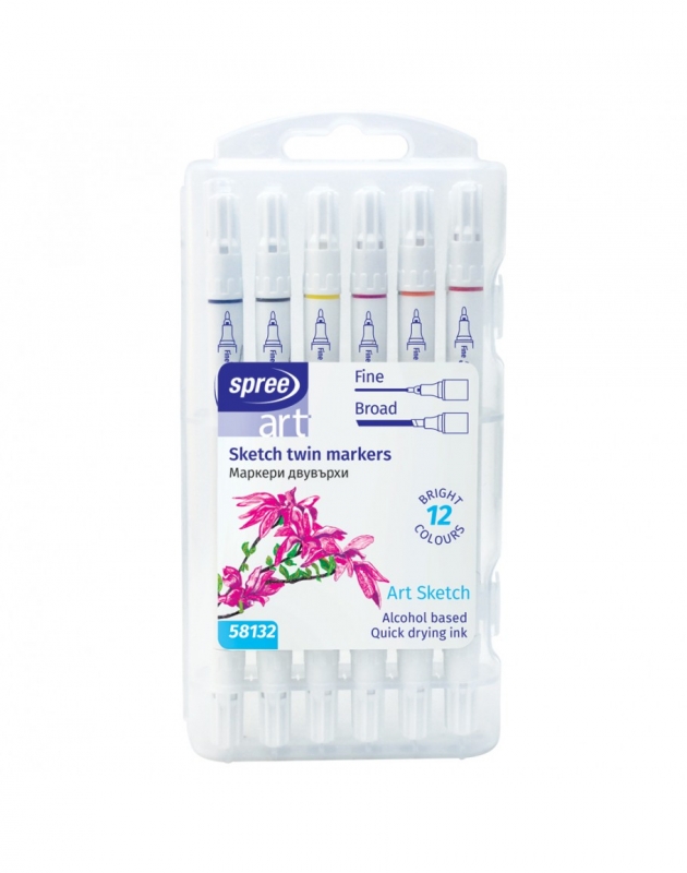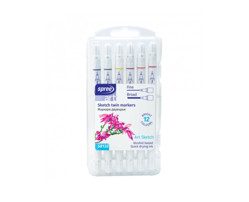 - Flomasteriai SPREE ART SKETCH, dvipusiai 12 spalvų