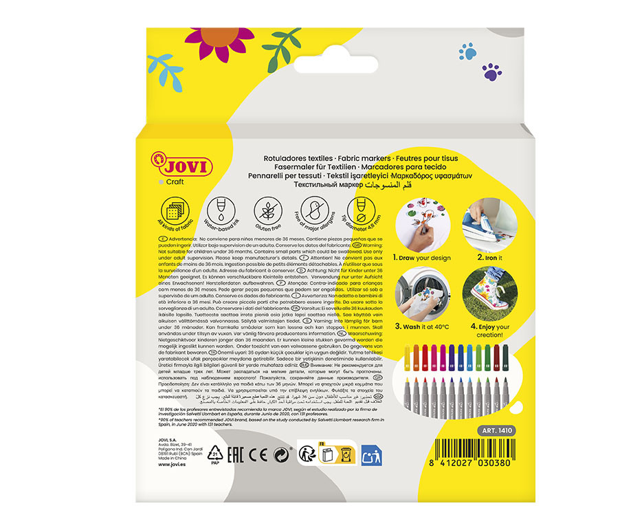 Flomasteriai tekstilei JOVI, 12 spalvų