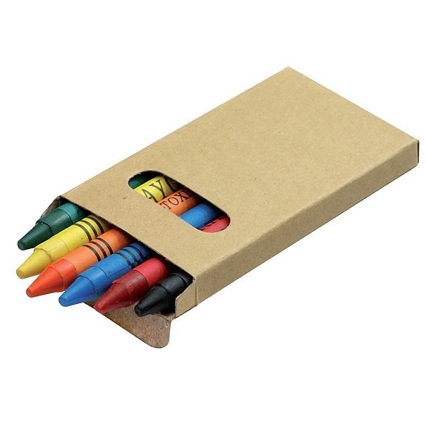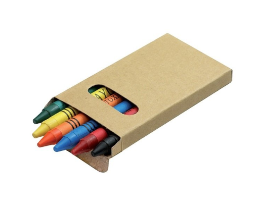 Spalvotos vaškinės kreidelės BC19802, 6 kreidelės. Rinkinys pagamintas iš perdirbtų medžiagų. Tampografijos būdu galimas logotipo uždėjimas.