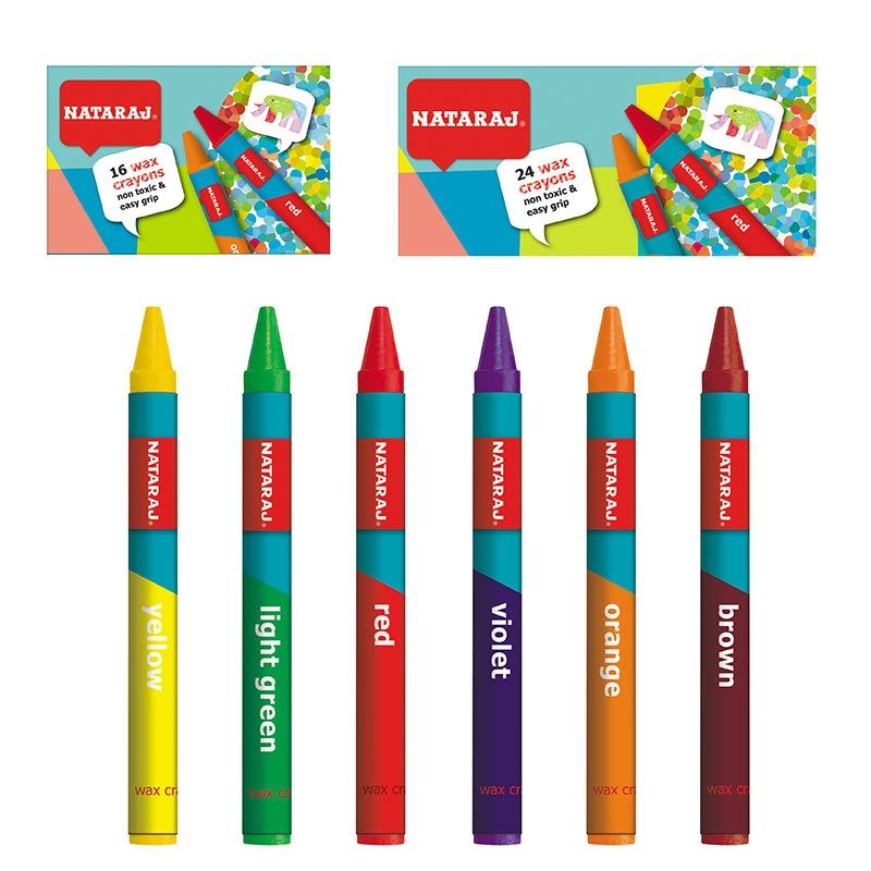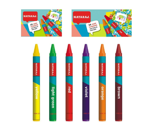 Vaškinės kreidelės NATARAJ, 90 mm ilgio, 16 spalvų