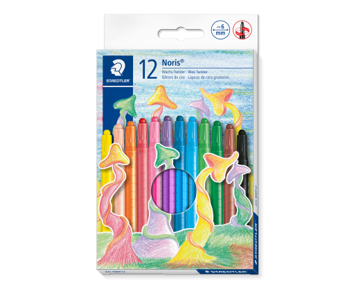 Vaškinės kreidelės iš NORIS Su išsukamu mechanizmu. Ryškios spalvos. Lengva piešti. Netoksiškos. Itin atsparios lūžiams. Pakuotėje 12 spalvų.Prekės parametrai