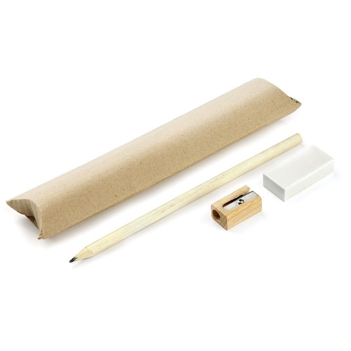 Rinkinys ECO: pieštukas, trintukas, drožtukas BC19811. Rinkinys pagamintas iš perdirbtų medžiagų. Tampografijos būdu galimas logotipo uždėjimas.