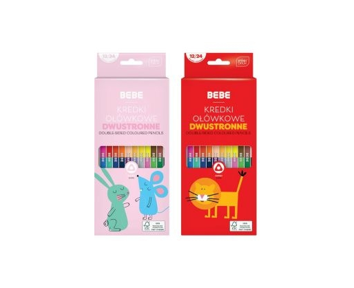 Spalvoti pieštukai INTERDRUK BB Kids dvipusiai, tribriauniai, 12 vientų - 24 spalvos