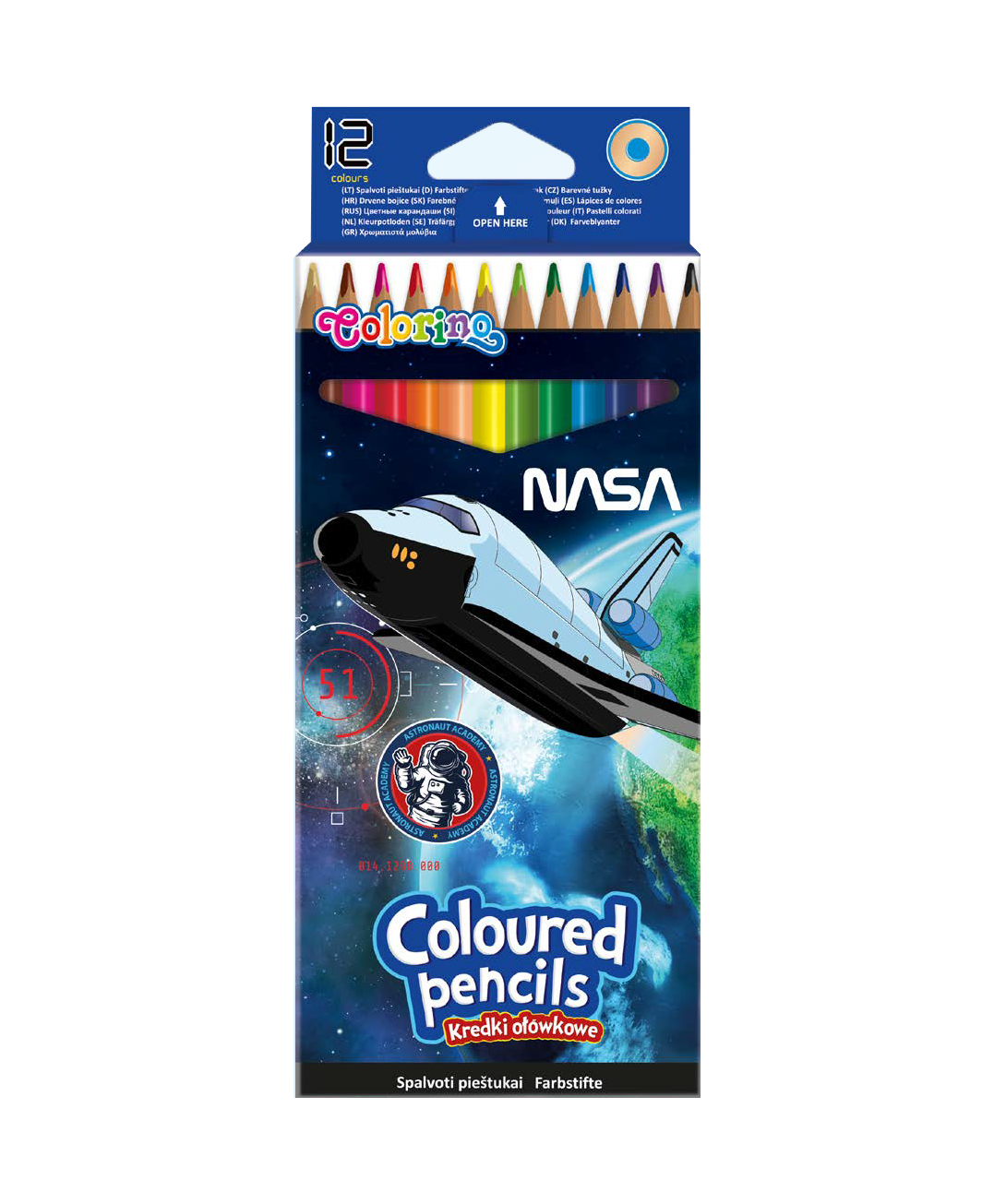 - Spalvoti pieštukai 12 spalvų trikampiu korpusu Nasa