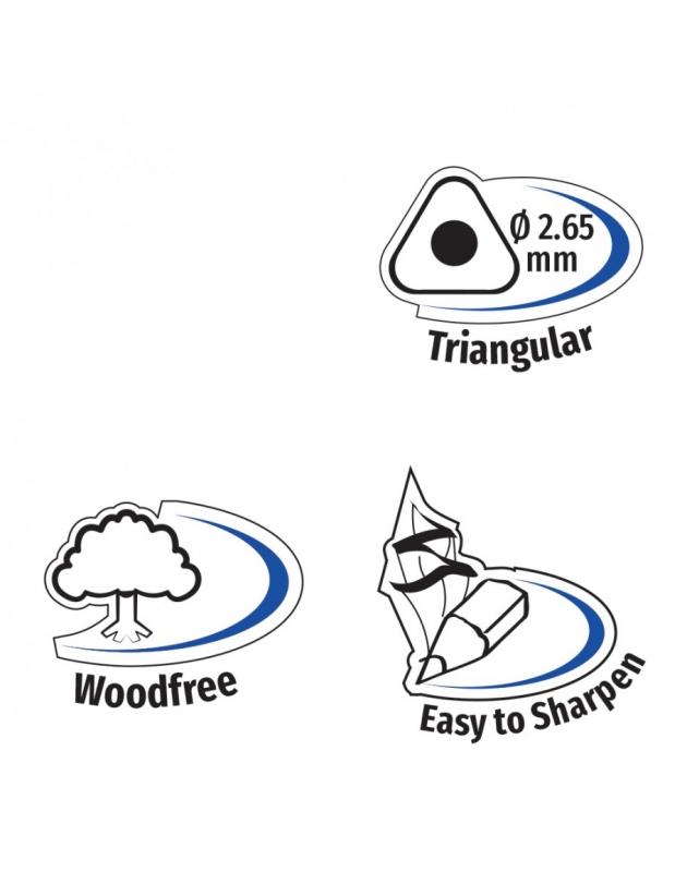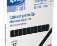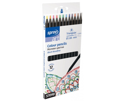 - Spalvoti pieštukai SPREE 12 spalvų juodu korpusu, plastikiniai, tribriauniai