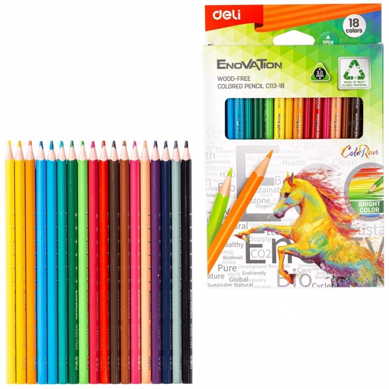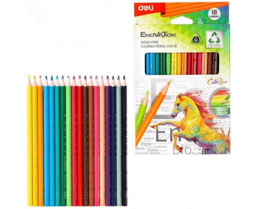 Spalvoti pieštukai DELI EnoVATion 18 spalvų, C113-18 plastikiniai tribriauniai