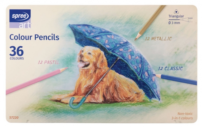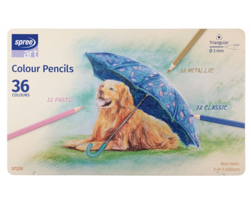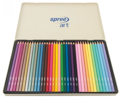 - Spalvoti pieštukai SPREE ART, 36 spalvos, metalinėje dėžutėje, tribriauniai
