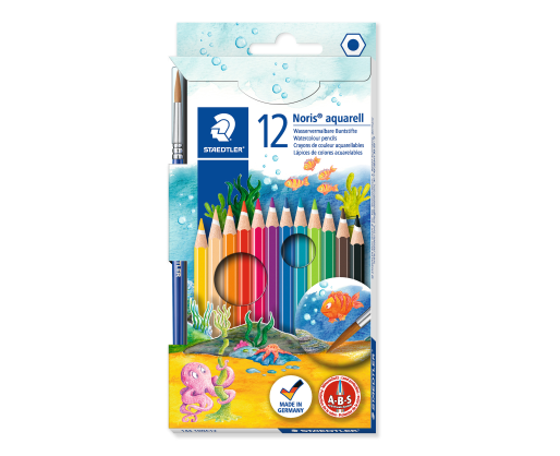 Pieštukai aukvareliniaii iš NORIS CLUB kolekcijos. Ypatingai minkšti pieštukai klasikinės šešiakampio formos. Baltas apsauginis sluoksnis sustiprina pagrindinį branduolį ir didina atsparumą lūžiams. 12 arba 24 spalvų. Rinkinyje yra teptukas.Prekės parametrai