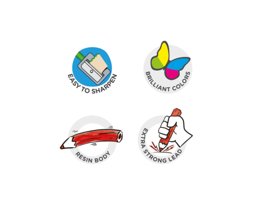 · Dėžutėje 12 skirtingų spalvų pieštukų.