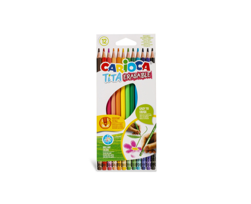 - Spalvoti pieštukai CARIOCA TITA, ištrinami su trintuku, 12 spalvų