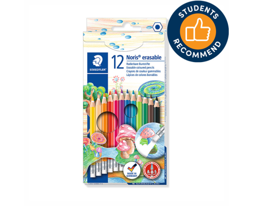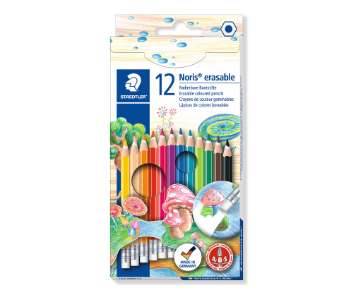 Spalvoti pieštukai, ištrinami, su trintuku STAEDTLER NORIS CLUB, 12 spalvų