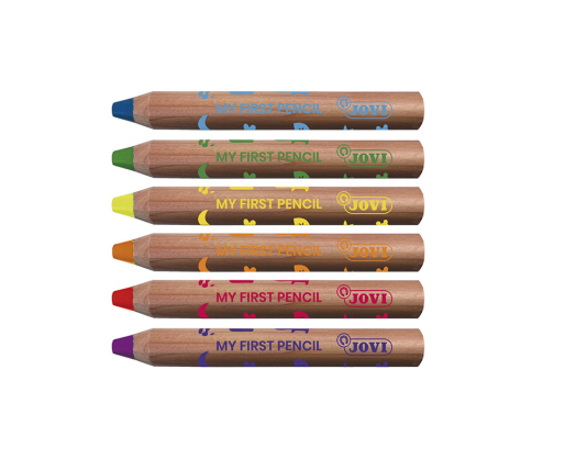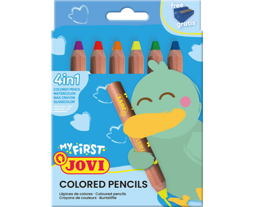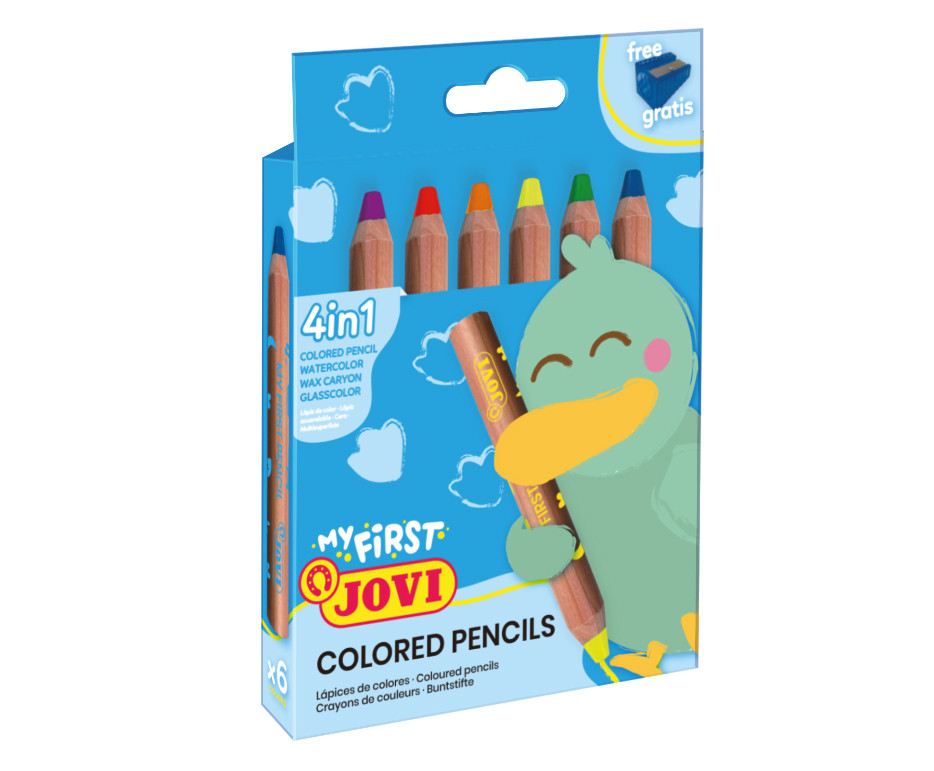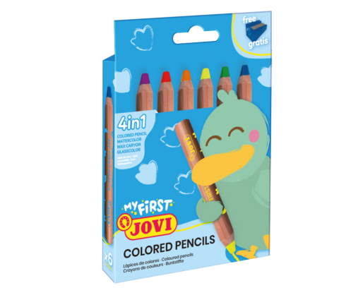- Spalvoti pieštukai MY FIRST, 6 spalvos, keturi viename su drožtuku