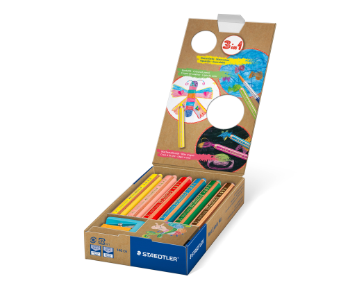 • 3in1: spalvoti pieštukai, vaškinės kreidelės ir akvareliniai pieštukai viename, skirti piešti ant popieriau, kartono, stiklo ir kitų paviršių, taip pat tamsių.