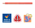 Ergonomiškos trikampio formos Noris® Jumbo 128 Jumbo spalvoti pieštukai, skirti atsipalaiduoti ir lengvai piešti. Idealiai tinka pirmiesiems rašymo ir piešimo pratimams. A·B·S – balta apsauginė danga sustiprina švino šerdį ir padidina atsparumą lūžimui. Patrauklus žvaigždžių dizainas su vardo laukeliu. Mediena iš FSC sertifikuotų, tvariai tvarkomų miškų. Kartoninė dėžutė, kurioje yra 10 + 2 įvairių spalvų spalvoti pieštukai ir 1 drožtukas.