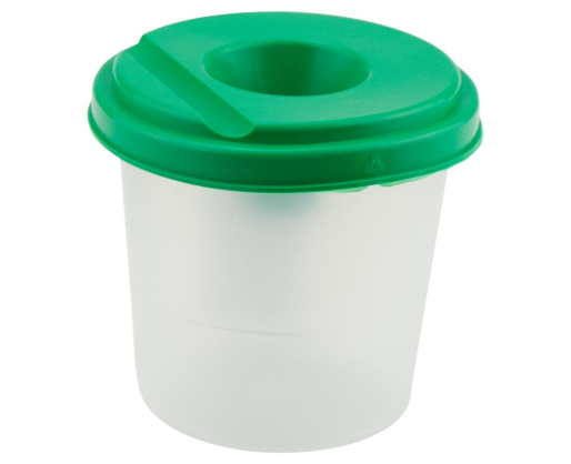 Indelis turi griovelį ant dangtelio patogiam ir saugiam išplauto teptuko laikymui. Pagamina iš smūgiams atsparus polipropileno plastiko.
