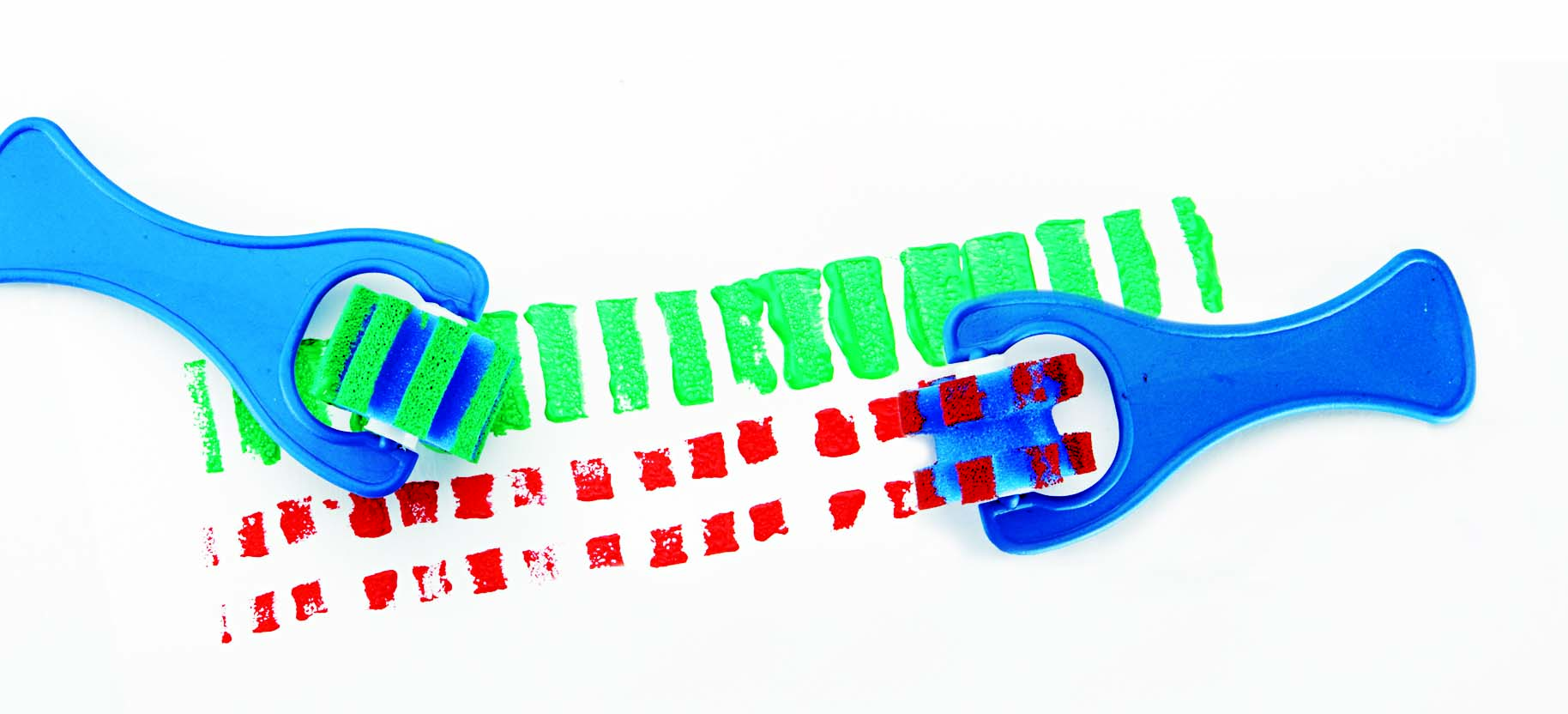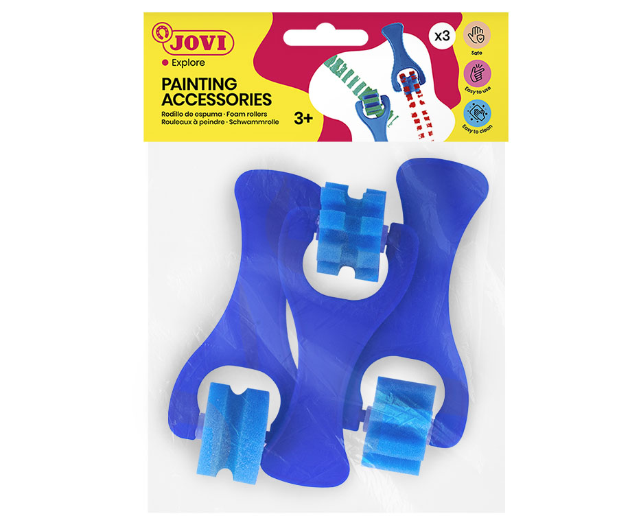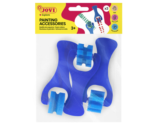 3 skirtingų formų putplasčio voleliai su atsparia plastikine rankena, idealiai tinkantys su bet kokiais dažais – tempera, pirštų dažais ar akriliniais dažais. Taip pat lengva valyti su muilu ir vandeniu