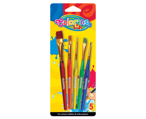 • 5 spalvų teptukų rinkinys su akrilo rankenėlemis.