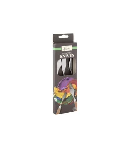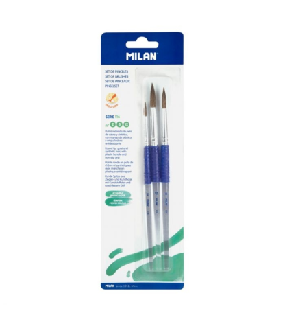 Plokštieji teptukai: 3 su tiesiais šereliais, 12 mm, 6 mm ir 3 mm storio ir 1 su įstrižais šereliais, 8 mm storio. Apvalūs teptukai: 3 mm ir 2 mm.