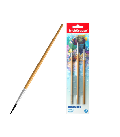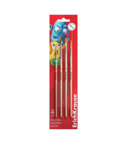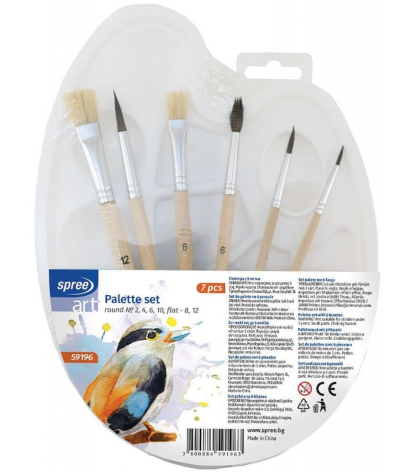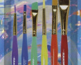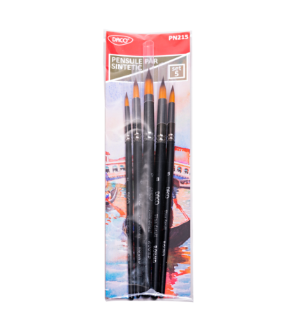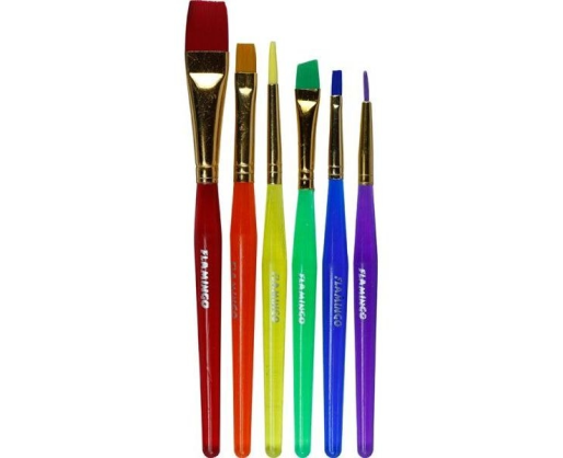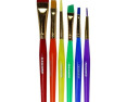 Teptukų rinkinys su sintetiniais šereliais. Įvairių storių ir spalvų teptukai. Dėl tvirtų skaidraus plastiko rankenų teptukus lengva valyti po naudojimo. Rinkinį sudaro 6 teptukai: 4 plokšti ir 2 apvalūs.